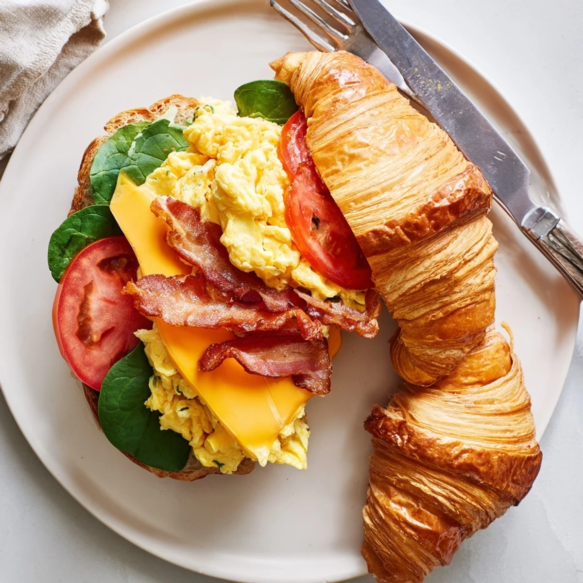 Start your morning with these irresistible croissant breakfast sandwiches featuring layers of fluffy scrambled eggs, crispy bacon, and melted cheddar cheese. The buttery, flaky croissant base adds rich French flair while fresh spinach and tomato bring brightness and crunch. Ready in just 30 minutes, these handheld breakfasts are perfect for busy weekdays or leisurely weekend brunching with family and friends.