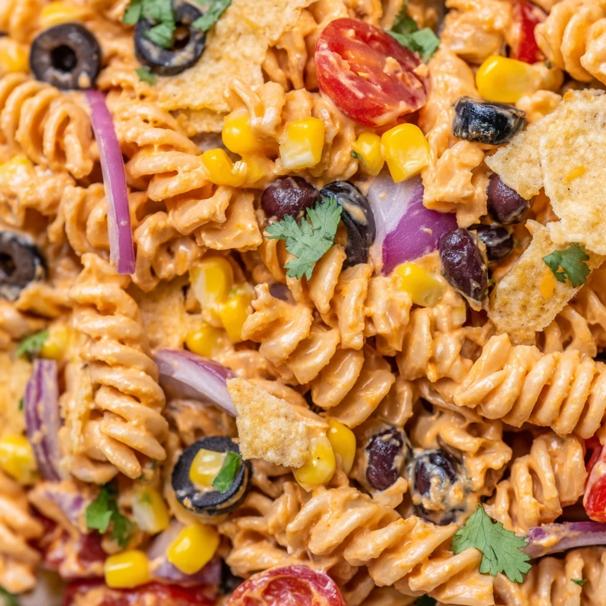 This vibrant dish combines tender rotini pasta with all your favorite taco ingredients—seasoned ground beef, black beans, corn, cherry tomatoes, and crisp vegetables—all coated in a tangy sour cream and lime dressing. Ready in just 30 minutes, it's an ideal make-ahead meal for gatherings or busy weeknights. The crushed tortilla chips add satisfying crunch, while shredded cheddar and fresh cilantro bring authentic Tex-Mex flair.